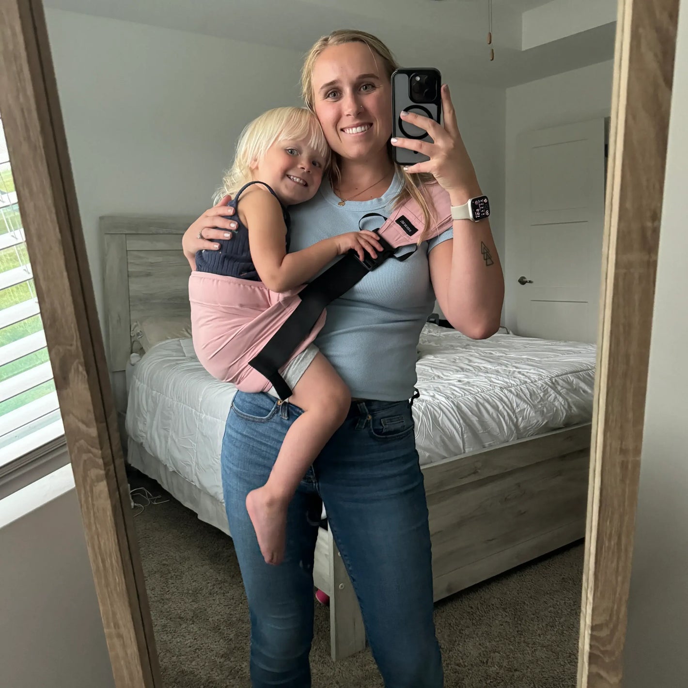 Er ist perfekt für die Übergangsphase, in der sie zu groß für eine Babytrage sind, aber immer noch gehalten werden möchten.